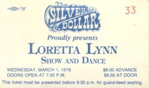 I was terribly nervous on the evening of the interview. She was doing a show and dance at the Silver Dollar dance hall. I was told to come outside to her bus, during the intermission. Well, I pushed open a side door and quickly set off the fire alarm! The club manager came over and took care of that. At Loretta’s bus, her road manager gave me a warning. He said I could talk to her about anything, except for one topic that was strictly off-limits.